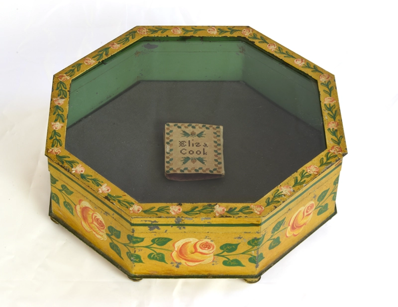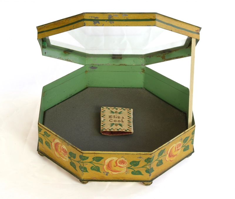 An excellent display box for small treasures - tiny samplers, needlework tools, miniatures, etc.! Sits on its original little feet.