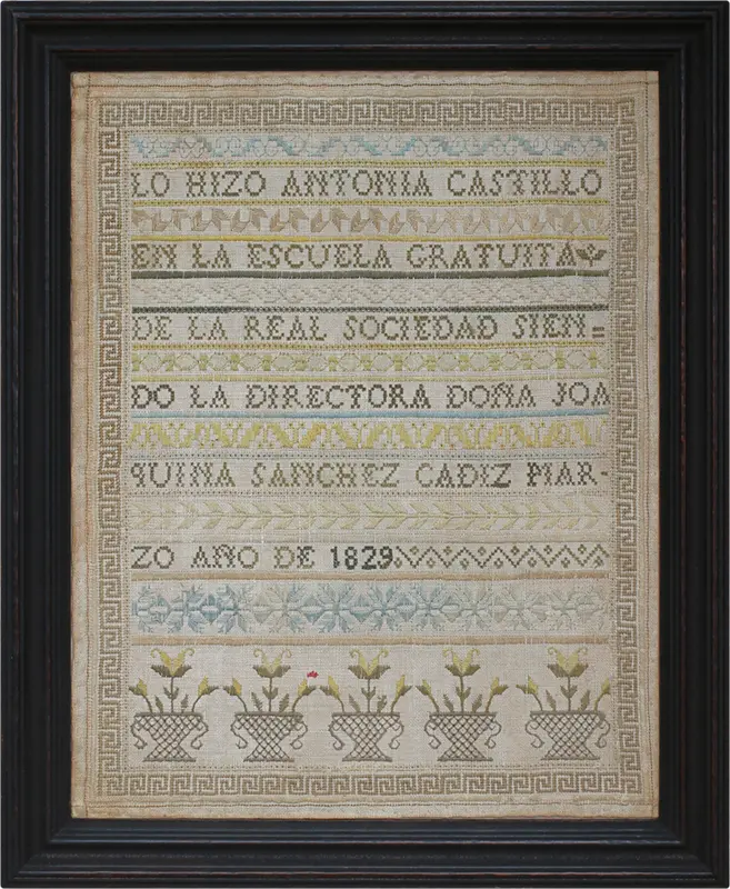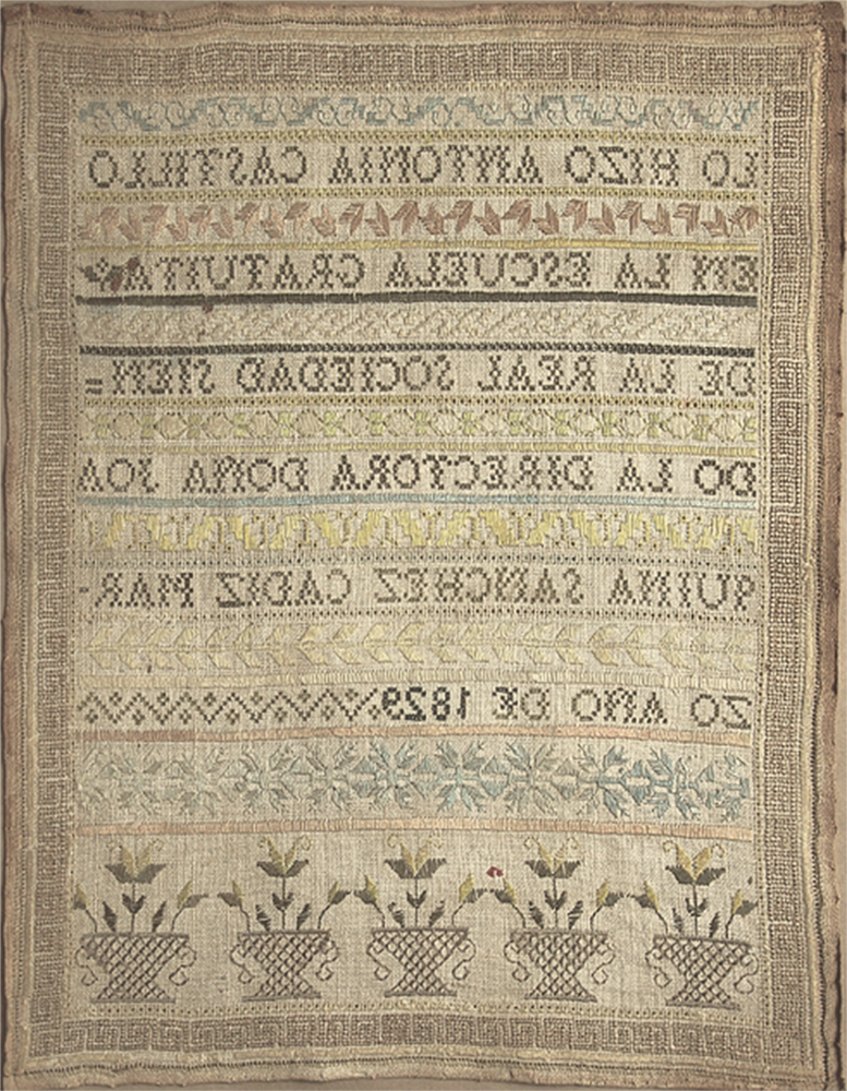 Made by Antonia Castillo at the Free School of The Royal Society under the Director Doña Joaquina Sánchez, Cadiz, March Year of 1829.