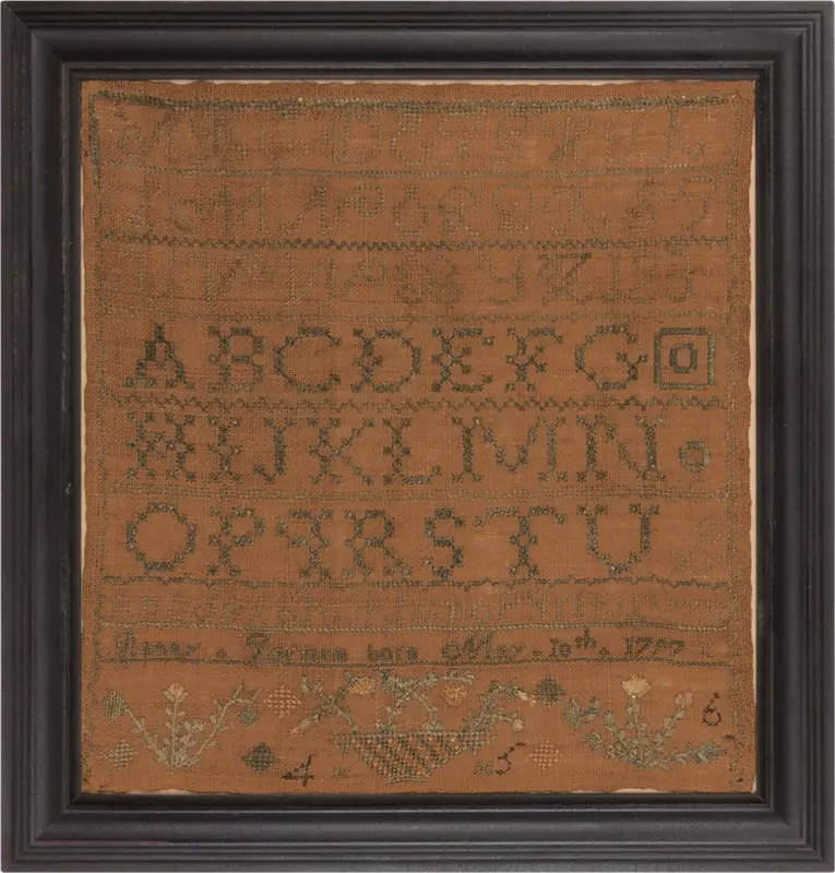 Marking samplers were often the first sewing project of young girls who were taught to stitch the alphabet and numbers. Many attended dame schools - small, informal neighborhood schools or classes run by older women in their homes, teaching basic reading, writing, and math, along with essential domestic skills like sewing. Their pupils were primarily young children.